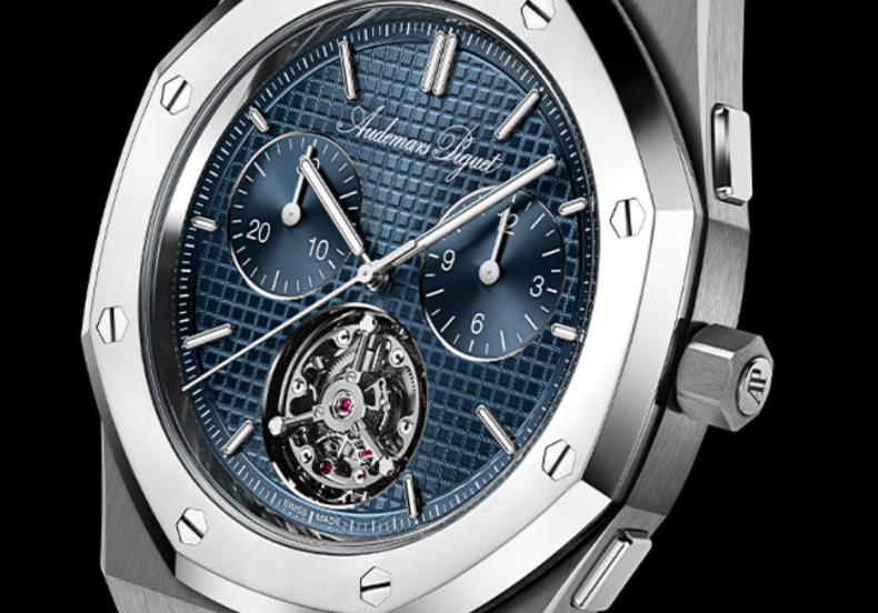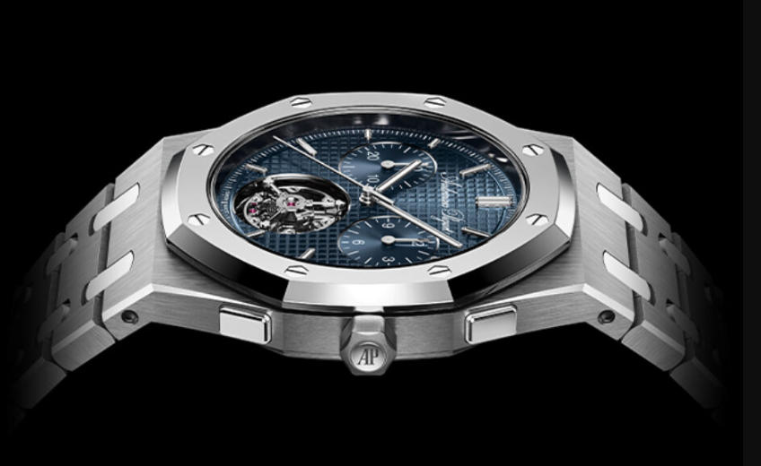 While the classic Bleu Nuit dial with petite tapisserie pattern looks like your classic top copy Audemars Piguet Royal Oak watches, the real story here is what’s happening under the hood. Chronographs have relied on the same hammer-and-heart-cam reset system for over a century — functional but requiring a lot of force. AP scrapped that entirely for the new in-house Calibre 8100, replacing it with a rack-and-pinion mechanism that stores energy while the chronograph runs. When you hit reset, that stored energy gets released, snapping the hands back to zero in under 0.15 seconds. It’s fast enough to feel instantaneous.