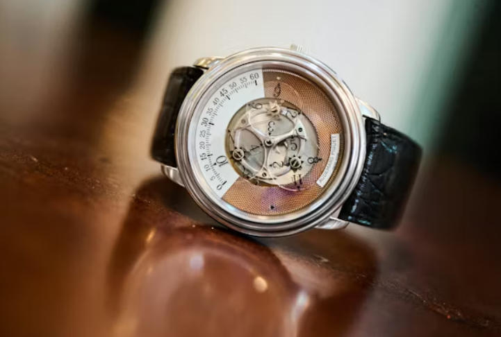 Saying that this new version is just a new case metal and dial color is technically correct, but with so many elements on the Starwheel’s dial, the changes feel more significant. Perhaps the most obvious is the change from the stark white and silver tones of the wandering hour mechanism to a matching rose gold hue. I’m not sure whether this is purely a visual trick, but the printing of the hour numerals on the rotating discs, in a rose gold hue, feels significantly more three-dimensional on the buy clone watches compared to the one in white gold. There’s a textured metallic quality to those hour numerals that wasn’t there before, which may contribute to the effect, and a great reminder that even tiny changes can affect a final product so deeply. The seconds hand is also in rose gold, while the minutes track and the outer chapter ring remain in the same black-and-white with the Audemars Piguet logo at (conventionally) 6 o’clock.